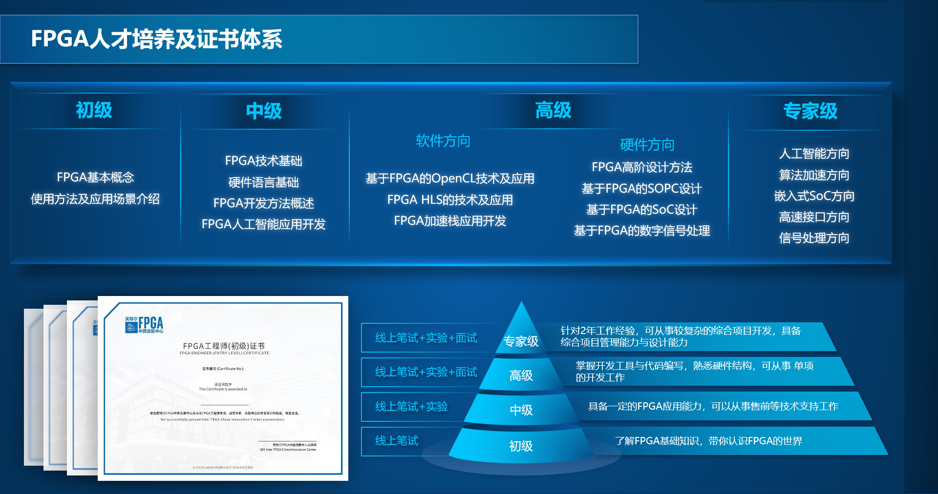 英特尔FPGA中国创新中心资深讲师徐栋玲,从4个方面为威廉体育官方网站的同学展开讲解,分别是“芯时代与FPGA”、“如何学习FPGA技术”、“FPGA人才发展现状”、“英特尔FPGA中国创新中心”。徐老师从时代背景出发,为员工介绍了FPGA技术在各个领域的应用;又从技术角度出发,为员工深入讲解了如何学习FPGA技术;然后从国内FPGA人才发展现状入手,为员工分析了FPGA与人工智能方向的就业前景;最后,徐老师介绍了英特尔FPGA中国创新中心,使员工了解到创新中心的职能和FPGA人才培养体系。