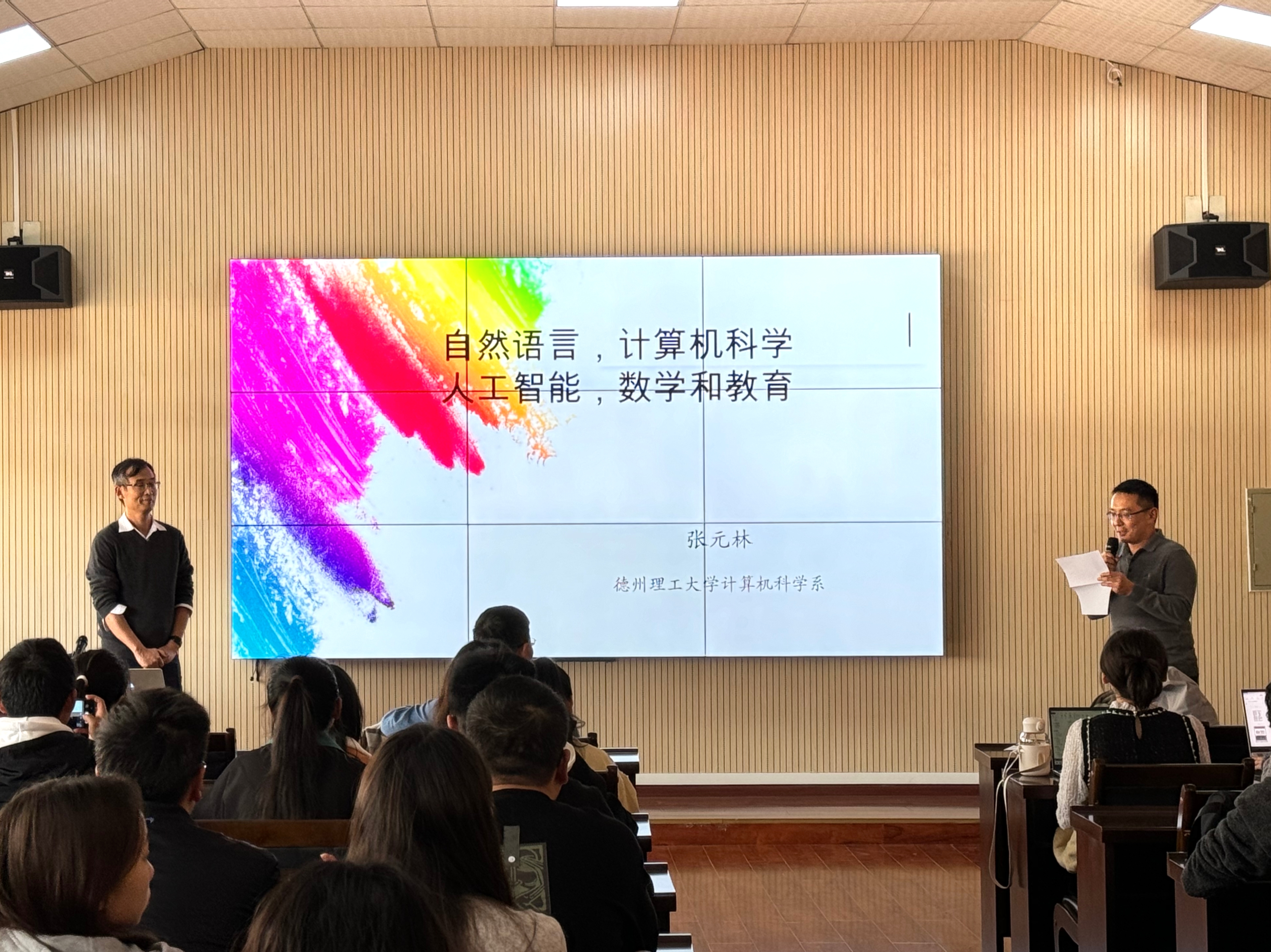 张元林博士的讲座题目是“自然语言,计算机科学,人工智能,数学和教育”。当今,人工智能正在对各行各业产生巨大而深远的颠覆式影响,大量的传统职业也许将不复存在,新兴的职业会应运而生。这使我们不得不重新思考:应该如何教育我们未来的一代?在这之中,有趣的是,人工智能本身就为我们提供了一些思路和方法。目前人工智能有两个大的方向:一个方向以大语言模型为代表,另一个是基于逻辑的方向,它们各有所长,目前还没有一个人工智能的理论或系统能够使两者完美结合。然而,人脑却天生具备两者的能力。理工科教育的一个共识是它的各个科目是紧密联系的,在中小学甚至是大学教育中应该有机地整合各相关学科的教与学,但具体教什么怎么教一直是理工教育研究的一个核心问题基于逻辑的人工智能提供了一个答案:逻辑以及计算机科学的方法提供了一个自然、简洁、清晰地整合各个学科学习的理论。基于这个理论,再辅以基于大语言模型的人工智能技术,人们可以开发出有效帮助员工学习理工科目的智能系统。张元林博士是从“智能的窗口—自然语言”谈起,然后到计算机科学、人工智能和数学,张博士还用一些其它数理学科的概念来演示逻辑是怎样统一这些概念的。