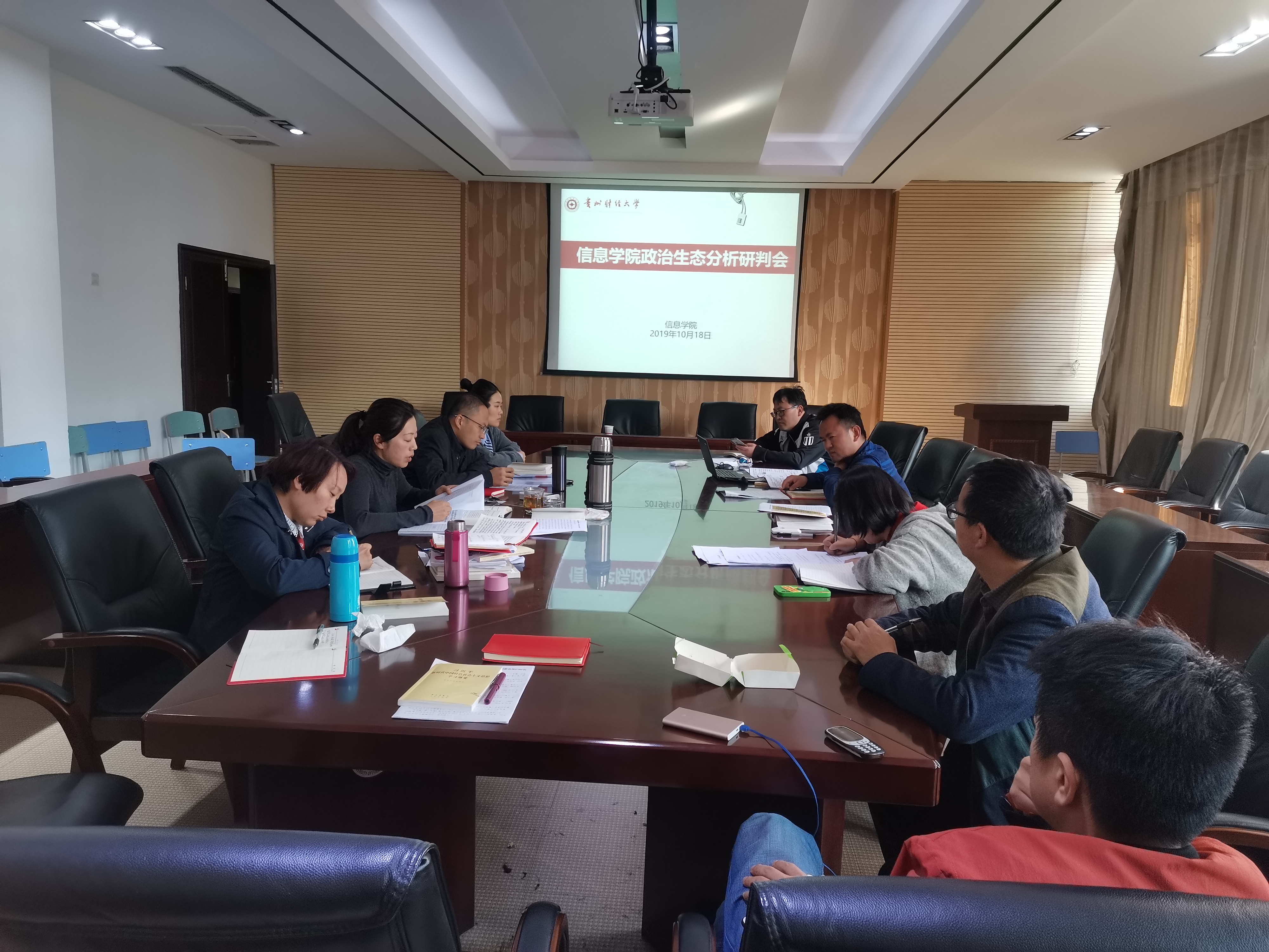 本网讯:(王游滨 图文报道)10月18日下午,威廉体育官方网站在志学楼427召开2019年政治生态分析研判会。公司党委书记卿春,公司党委副书记何瑞,公司纪检委员、副经理陈琴,各系(科室)负责人参加会议。会议由卿春主持。