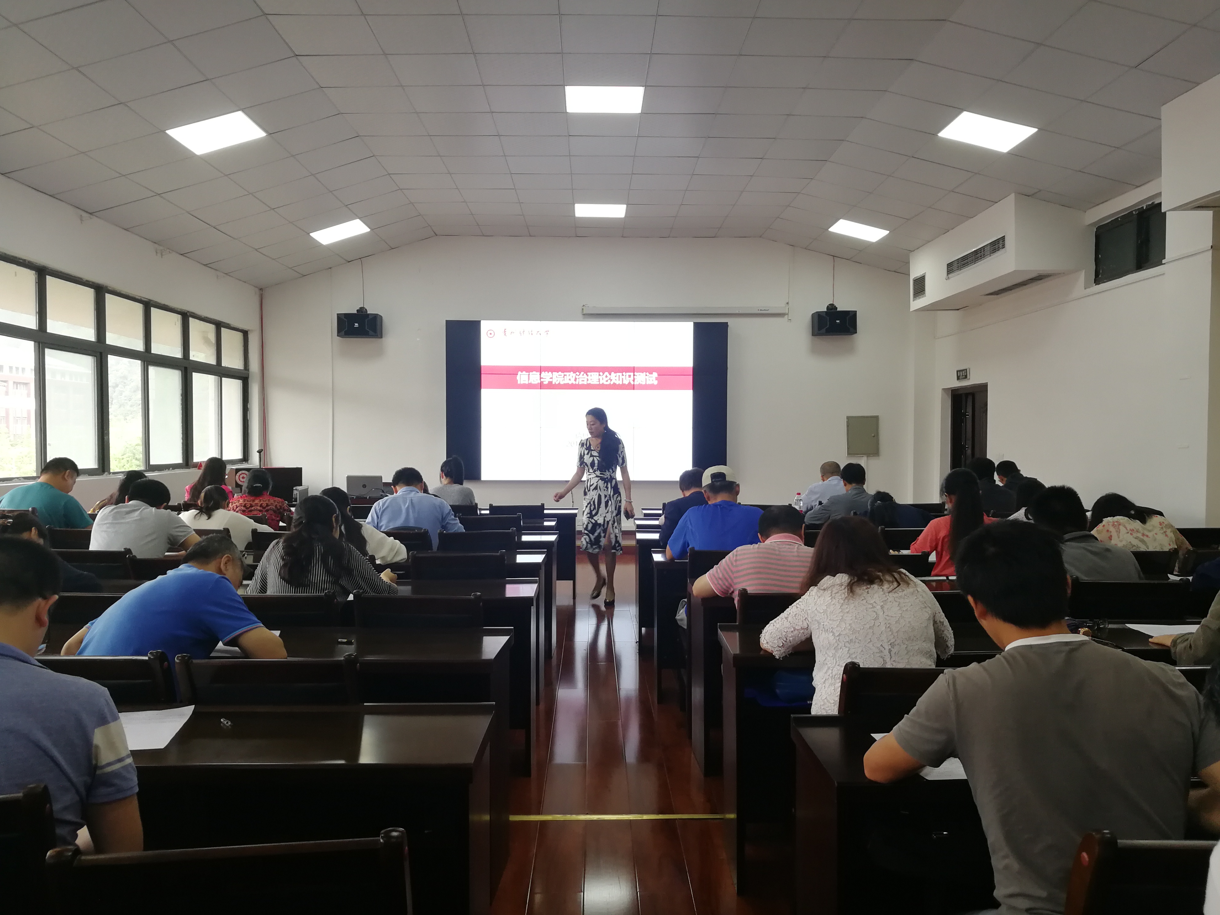 本网讯:(赵里红 图文报道)为进一步贯彻落实习近平新时代中国特色社会主义思想,提升教职工的政治理论水平,根据公司“党的基层组织建设深化年”活动总体部署,围绕“管理效能建设强化年”岗位大练兵,7月9日上午,威廉体育官方网站在志学楼506组织教职工进行政治理论知识测试,全院共60余名教职工参加,公司党委书记卿春监考。