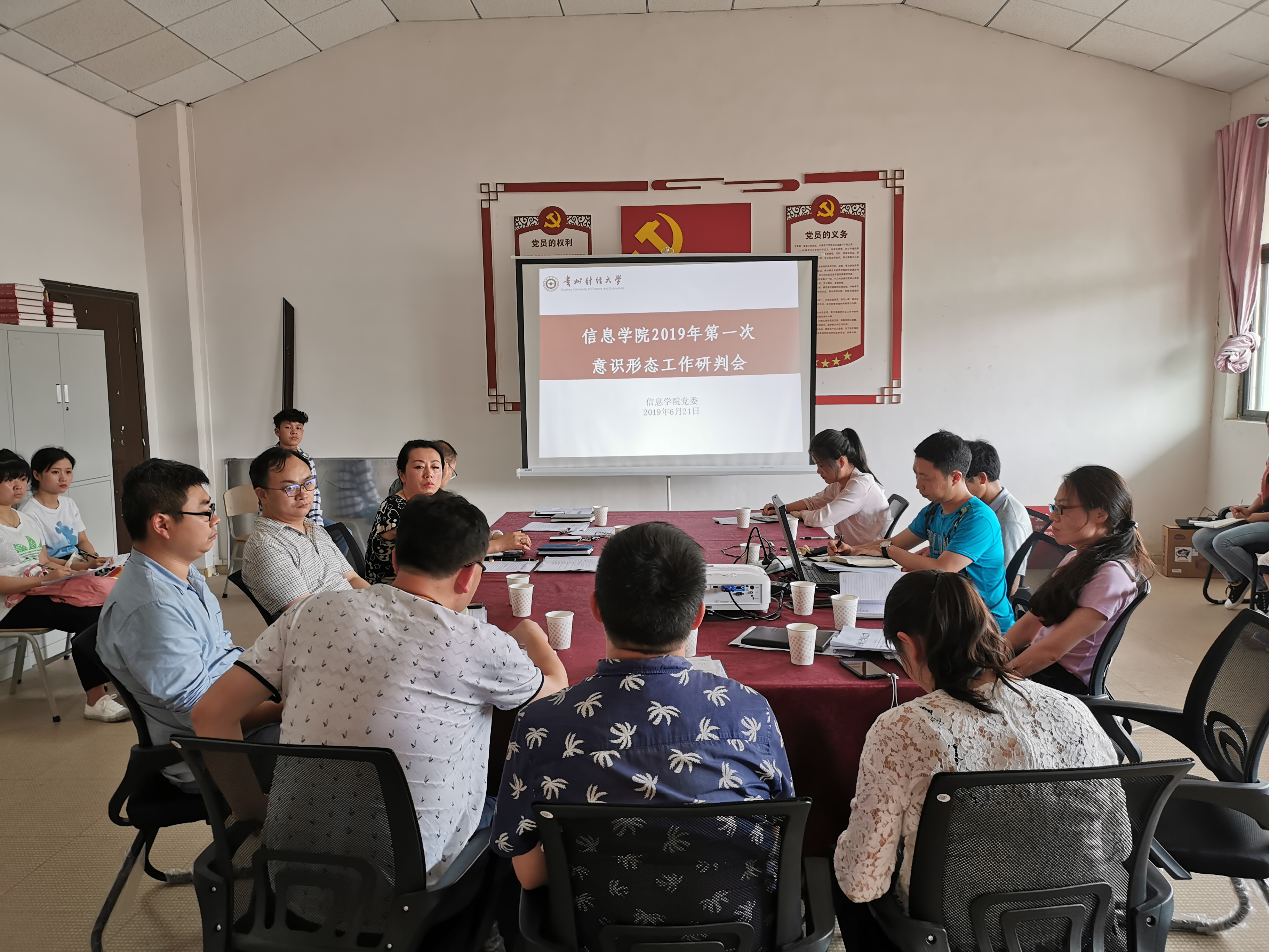 首先,邓明森领学了《习近平关于意识形态的重要论述》,并提出要创新工作方式,重点突破以点带面,用大家喜闻乐见的方式开展意识形态工作。何瑞传达了公司2019年上学期意识形态工作研判会会议精神。接着,各系、各科室就工作职责对意识形态问题及风险点进行了汇报。