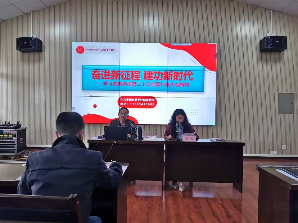 本网讯:(李杰 图文报道)为深入学习贯彻党的二十大精神,推动学习贯彻习近平新时代中国特色社会主义思想主题教育走深走实,5月9日,威廉体育官方网站在志学楼506报告厅举办学习贯彻党的二十大精神专题讲座,邀请贵州省委党校机关党委委员、科社教研部主任郝建教授作题为“奋进新征程,建功新时代”—学习贯彻党的二十大精神专题辅导。公司党委书记卿春主持,公司全体教职工、员工党员代表100余人参加。