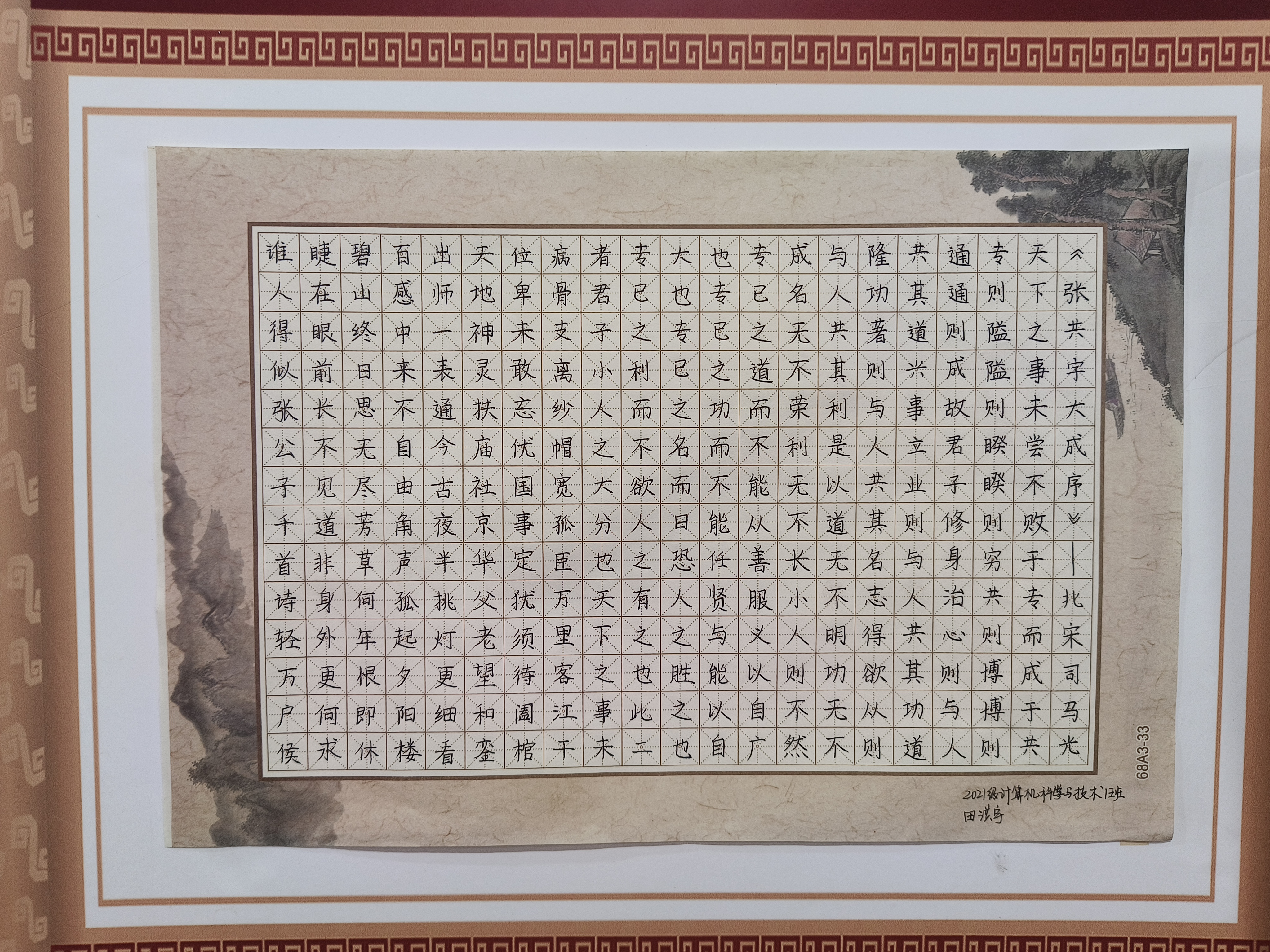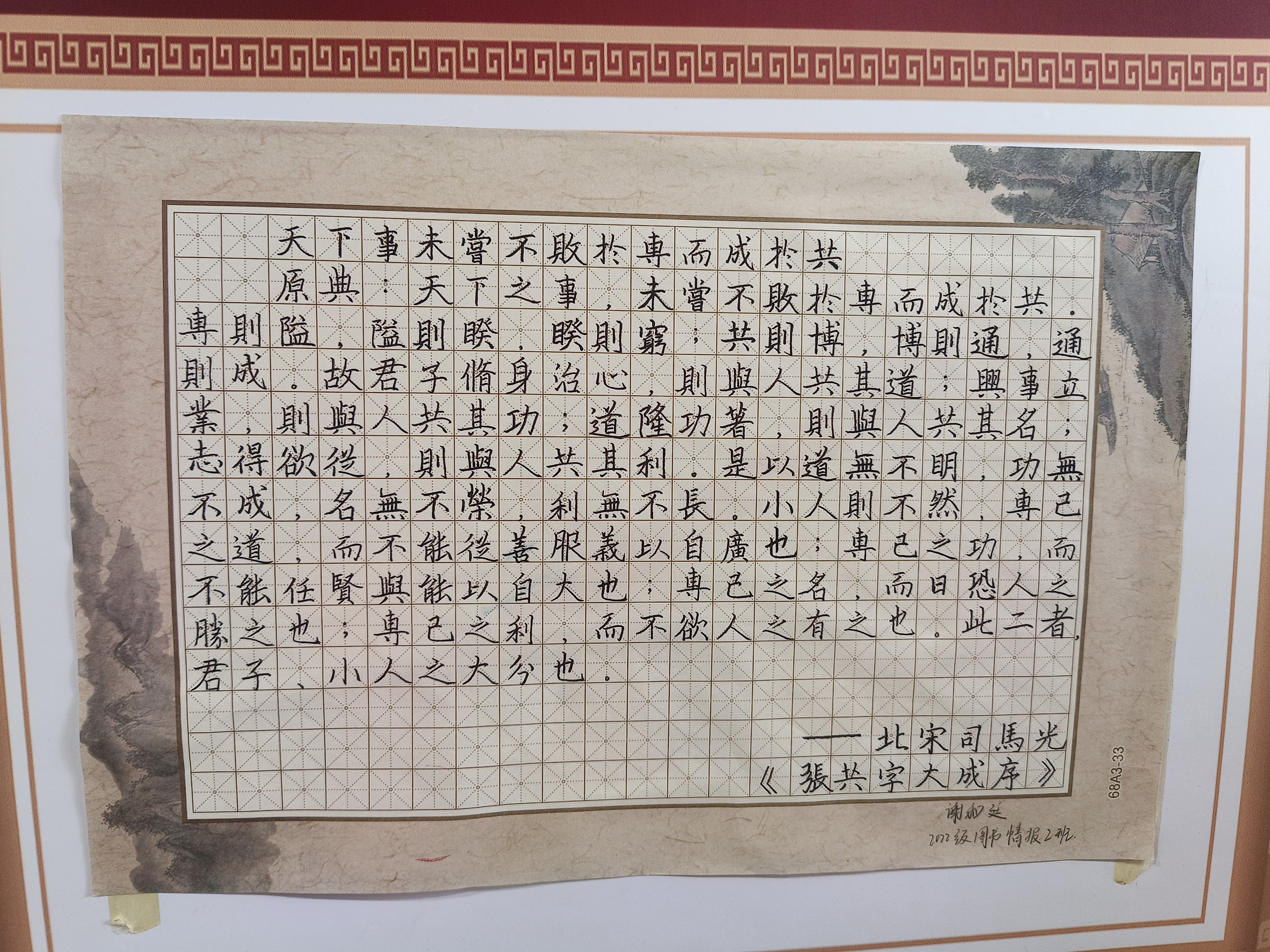 本网讯:(李杰 图文报道)为进一步引导广大同学感悟中华优秀传统文化,领略习近平总书记的独特语言风格和人格魅力,威廉体育官方网站组织开展了《习近平用典》书法研习比赛,并于2024年11月17日-24日在樱花苑1栋一站式员工社区进行了优秀作品展示,吸引了很多爱好书法的师生驻足观看。