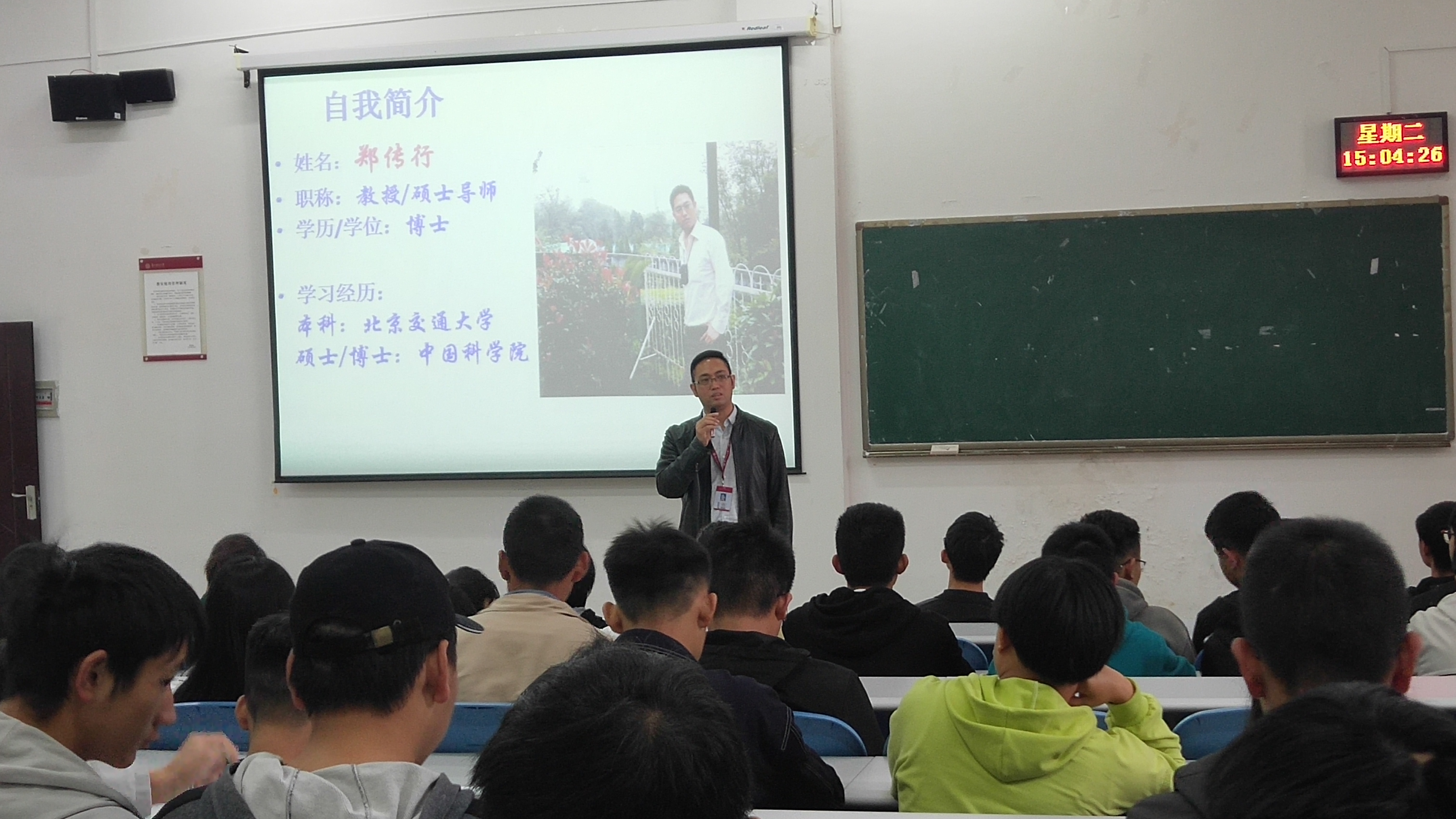 郑传行教授通过自身经历阐明职业生涯规划的重要性,引导同学们寻找自己的职业定位。通过分析当下就业形势指导同学们如何规划老员工活。同时强调在一生当中选择的重要性, 相同的公司、相似的出身,有的人成功了有的人却失败了,这在于选择的不同。最后强调,大学不是“游乐场”,同学们应该找到适合自己的学习方法,参与不同的社会实践,规划好自己的老员工活,努力为实现自己的目标而不懈奋斗。
