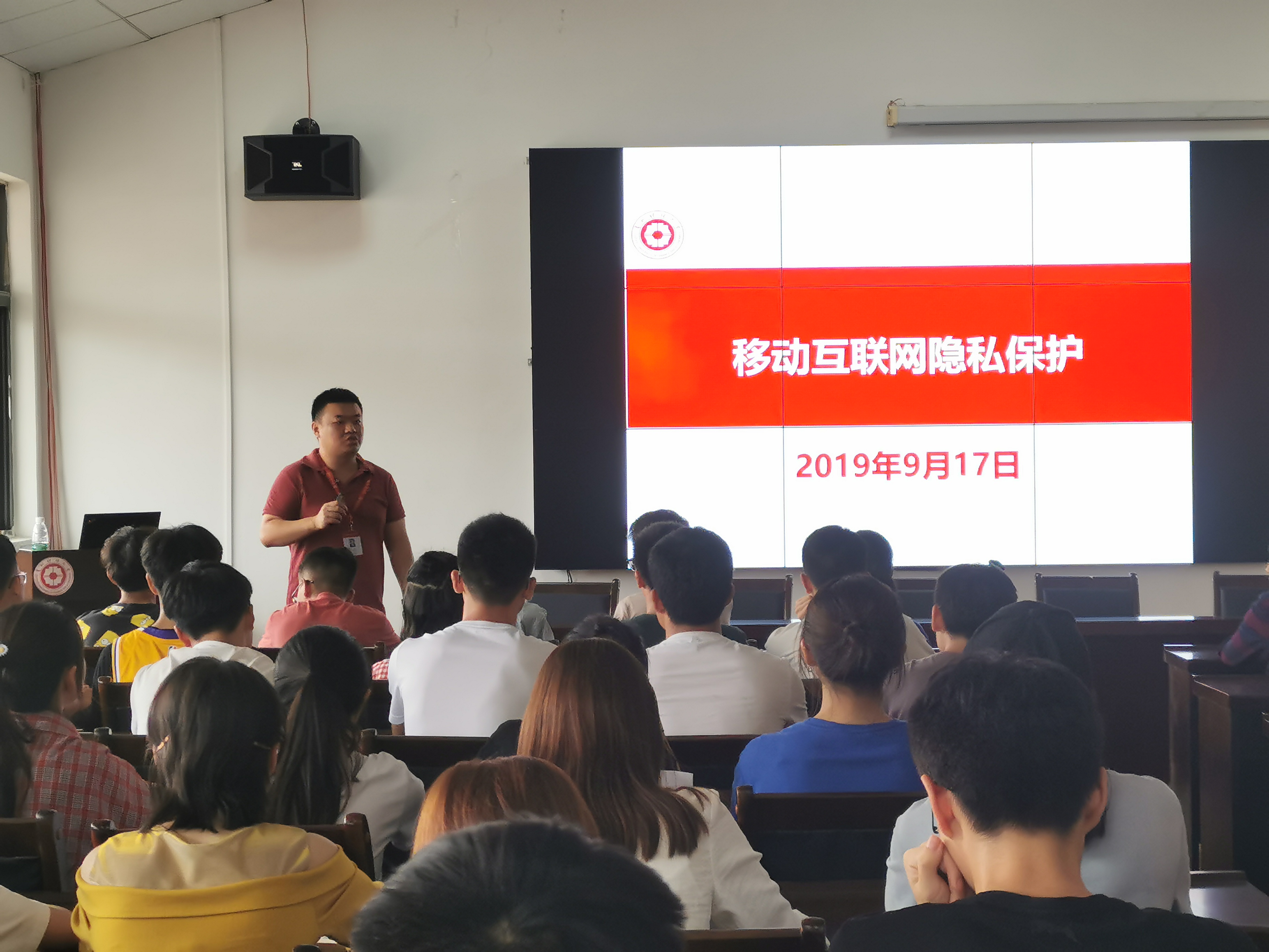 本网讯:(赵里红 图文报道)为进一步做好网络安全宣传教育,9月17日下午,威廉体育官方网站在志学楼506报告厅举行“移动互联网隐私保护”网络安全主题讲座,公司刘海博士主讲,公司党委书记卿春、副书记何瑞及全院师生代表共计100余人参加。