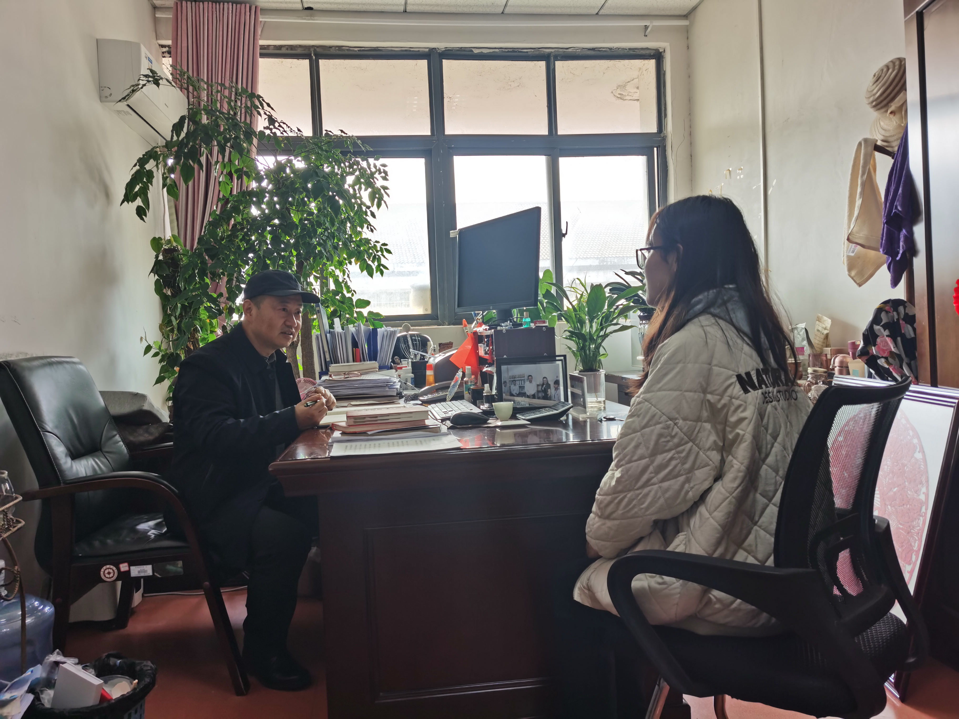 最后,葛建军对家庭经济困难员工陈艳红进行了访谈。葛建军详细询问该生的家庭、生活、学习情况,特别就她的经济困难、学习现状、学业和职业规划等方面进行了解,赞扬她做到了自信自立自强,鼓励她要不畏困难、志存高远,坚定信心,继续努力,全面提升综合素质,为将来的发展打下坚实基础。