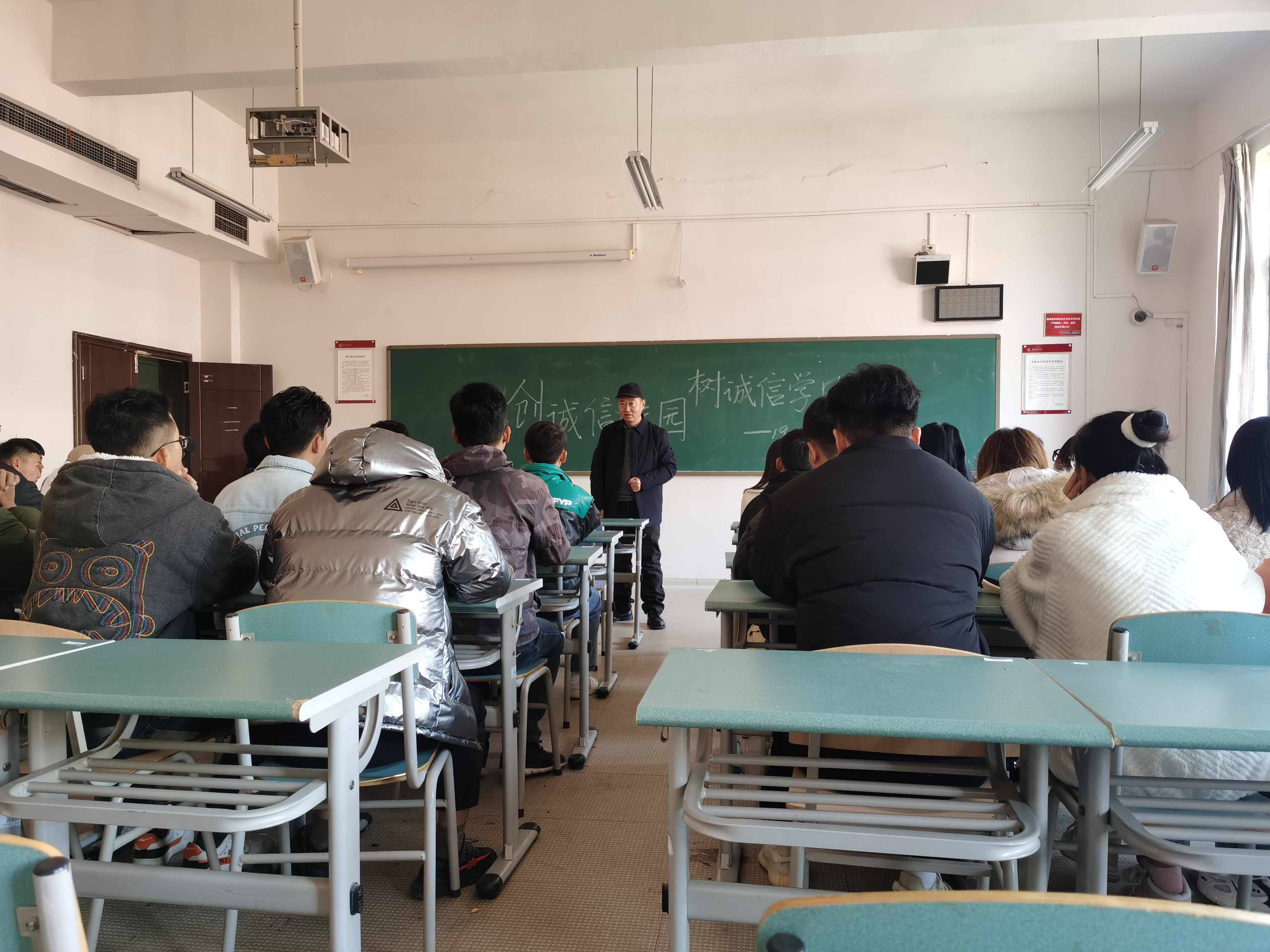 本网讯:(王凌云 图文报道)12月3日上午,公司党委委员、副董事长葛建军到威廉体育官方网站参加2019级数据结构与大数据技术班“创诚信校园,树诚信学风”主题班会,并走访了员工宿舍,与员工交流座谈,切实了解员工诉求,解决员工困难,信息公司正处级专职组织员徐聚星参加。