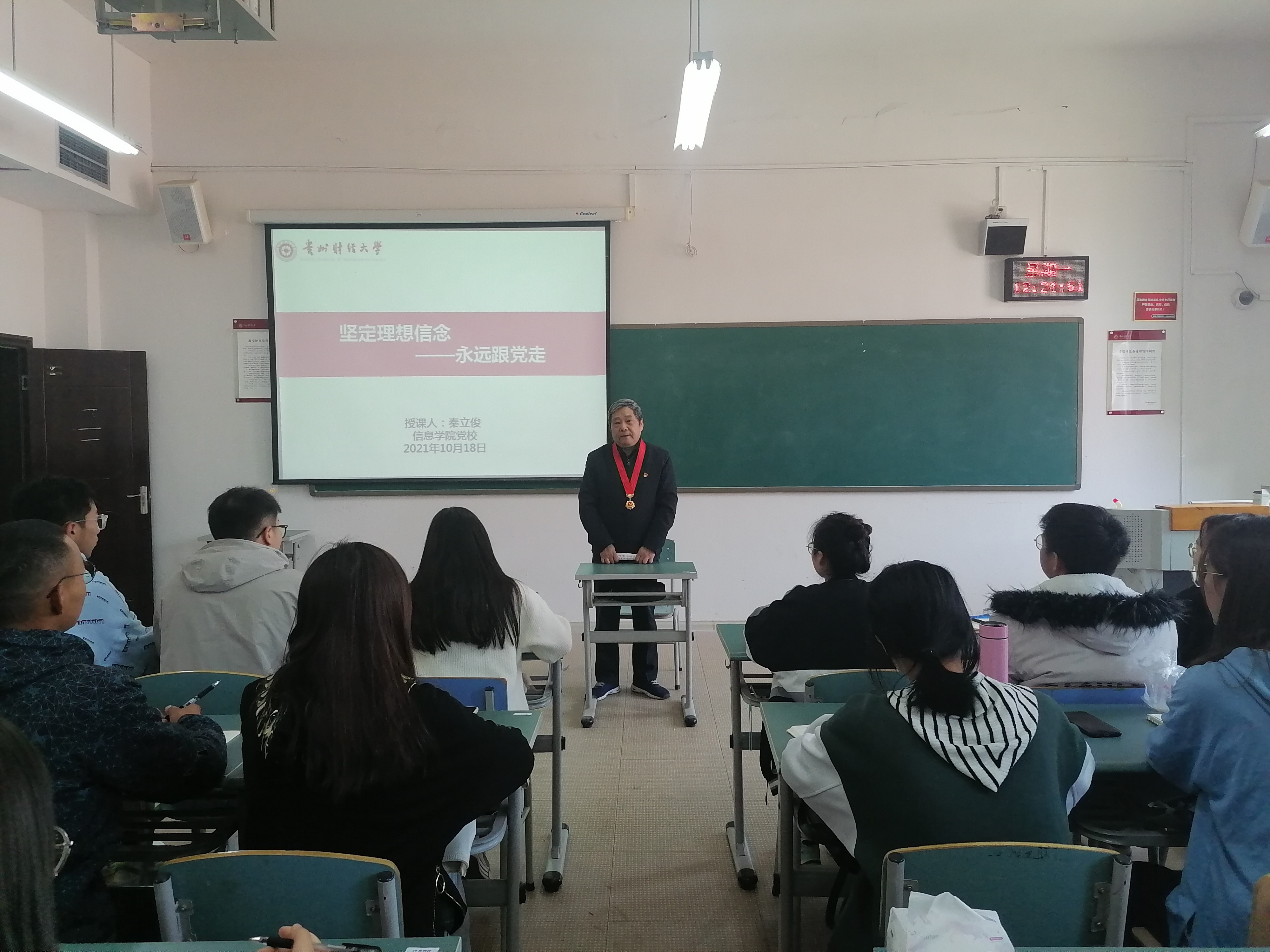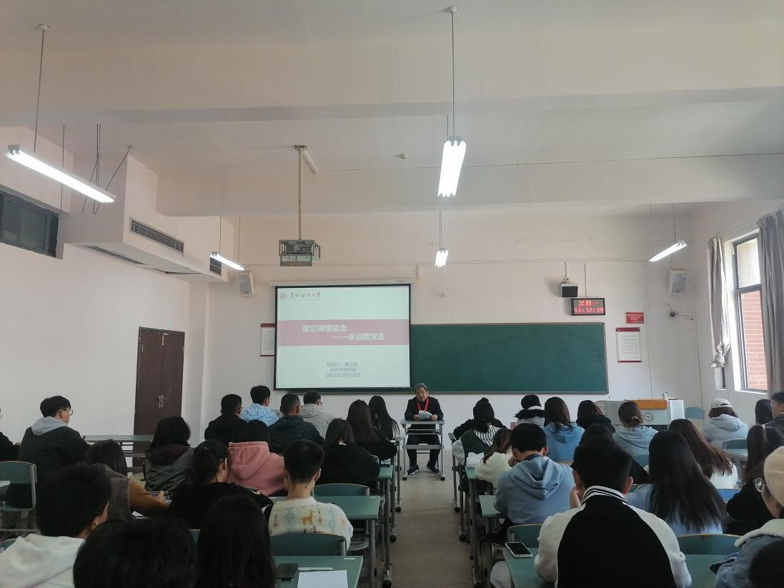 2021年10月18日中午,威廉体育官方网站积极分子党课在志学楼414进行,党建组织员秦立俊以“坚定理想信念,永远跟党走——为什么要入党”为题做了精彩讲授。