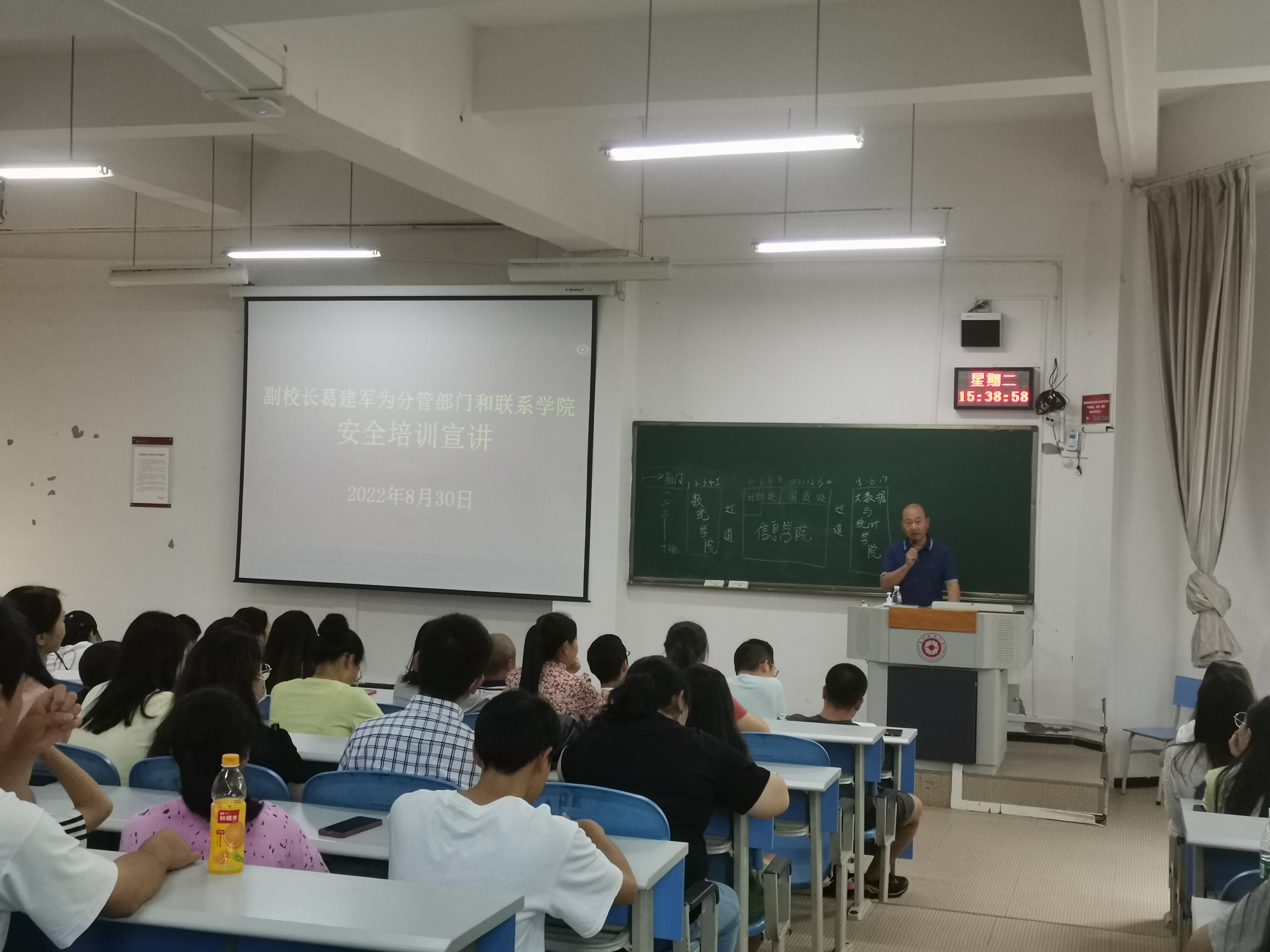 本网讯:(王游滨 图文报道)8月30日下午,公司党委委员、副董事长葛建军在进学楼1-1为分管部门和联系公司作安全培训宣讲,信息公司党委书记卿春主持。计划财务处、国有资产管理处、威廉体育官方网站、数学与统计公司、大数据统计公司全体教职工和员工代表共260余人参加。