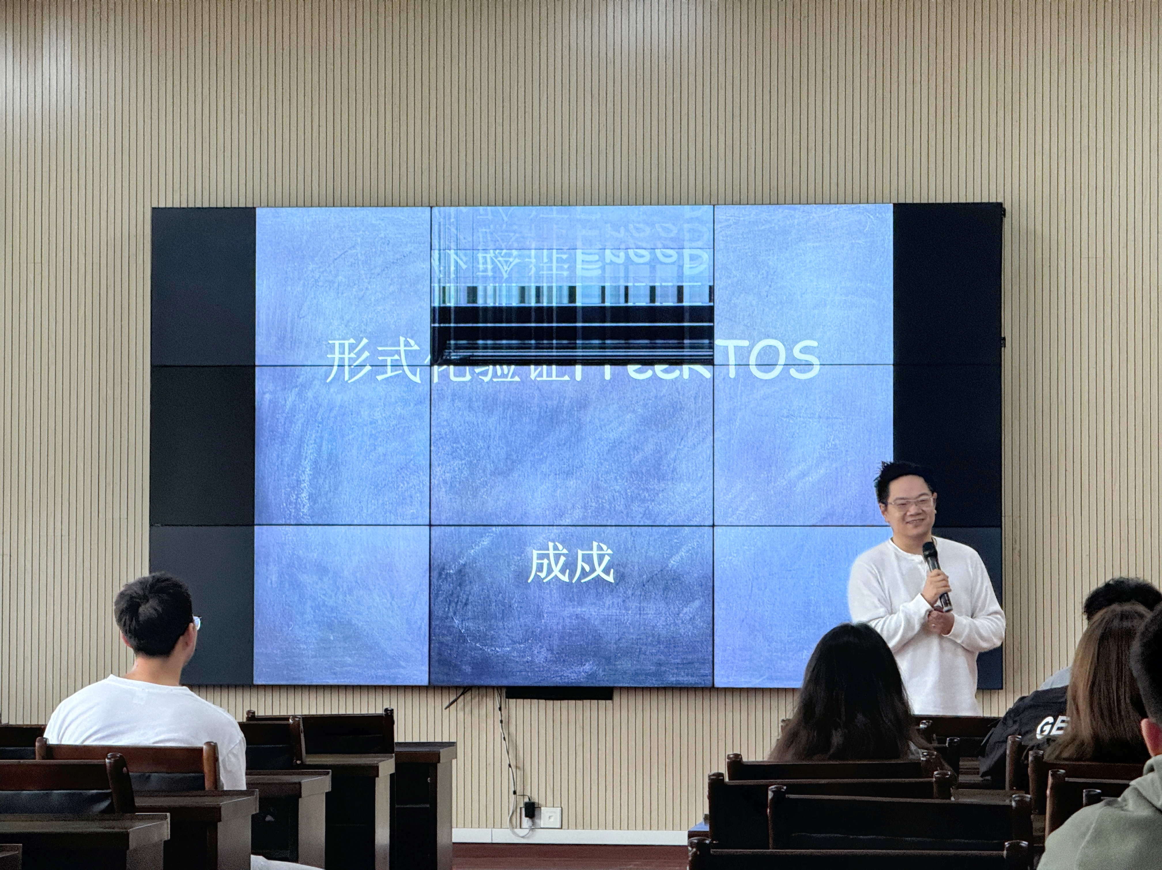 成戍博士以“针对FreeRTOS实时系统微内核的形式化建模与验证”为主题开展报告。成戍博士指出:FreeRTOS 作为一个广泛用于嵌入式系统的实时操作系统微内核,以其开源、小巧性、可移植性及流行度而著称。随着其应用领域的扩展,该系统的核心的安全可靠性也备受关注。报告内容包括:讨论使用形式化方法对FreeRTOS进行建模及验证的过程;介绍在基于FreeRTOS形式化模型的基础上,对其源代码运用代码验证器验证的过程所揭示的潜在问题;讨论针对不同软件系统对安全性需求不同的特征,应用不同级别的安全验证方法的可能性,为后续研究和应用提供新的方向。