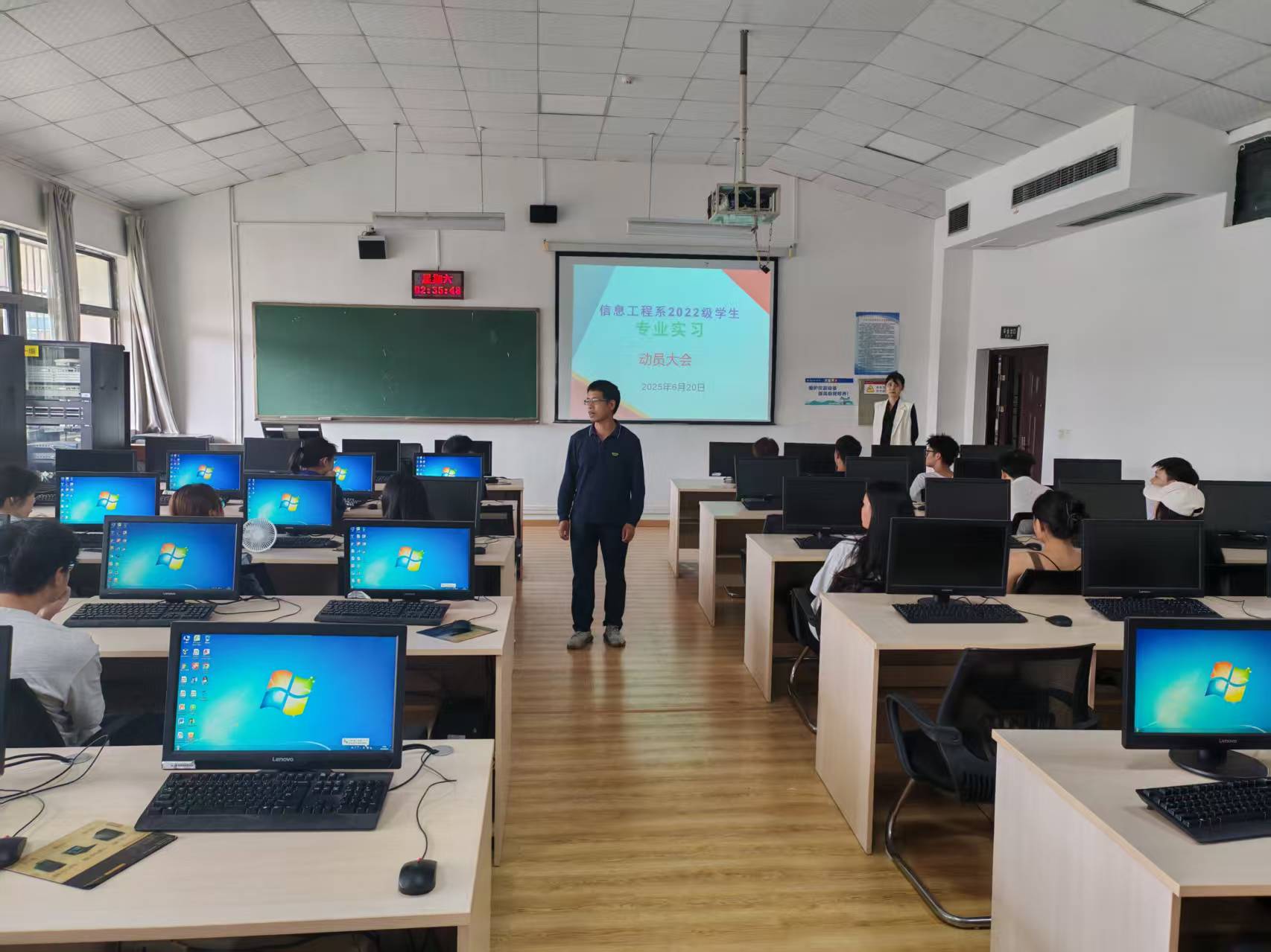 本网讯:(张骏 图文报道)为切实做好信息工程系员工的专业实习工作,引导员工明确实习目标、增强实习意识、做好实习准备,确保实习工作安全、有序、高效开展,2025年6月20日,威廉体育官方网站信息工程系召开2022级专业实习动员大会。会议由系副主任马思根主持,他介绍了本次专业实习的实施方案和实习时间安排的具体要求。公司协助经理分管实践教学的喻曦老师参加此次大会,她希望同学们认真对待每一个实习环节,确保实习取得实效。同时,提醒同学们在实习过程中要及时与指导教师保持沟通,遇到问题及时反馈,以便得到及时的指导和帮助。